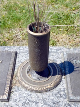 Flower vases made of bronze or granite may be installed on a monument base. A self-standing in-ground bronze vase may be installed, and is a favorite way of adorning a non-monument grave. Bronze vases include a concrete base or a granite base at purchasers option. These in-ground vases can be inverted into the integral canister in the ground to allow for mowing and cemetery maintenance. The Catholic Cemeteries offers three bronze vase designs; the Lotus, Doric, and Grecian. Each style vase has a cross emblem.